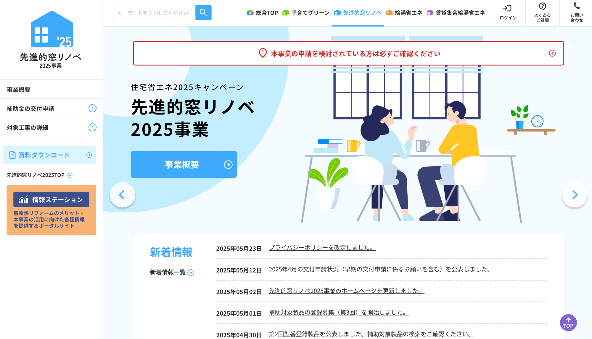 2025年度も昨年同等の1350億円の予算が確保されていますが、昨年度と比べて補助額はやや縮小し、極小サイズの窓は対象外となりました。