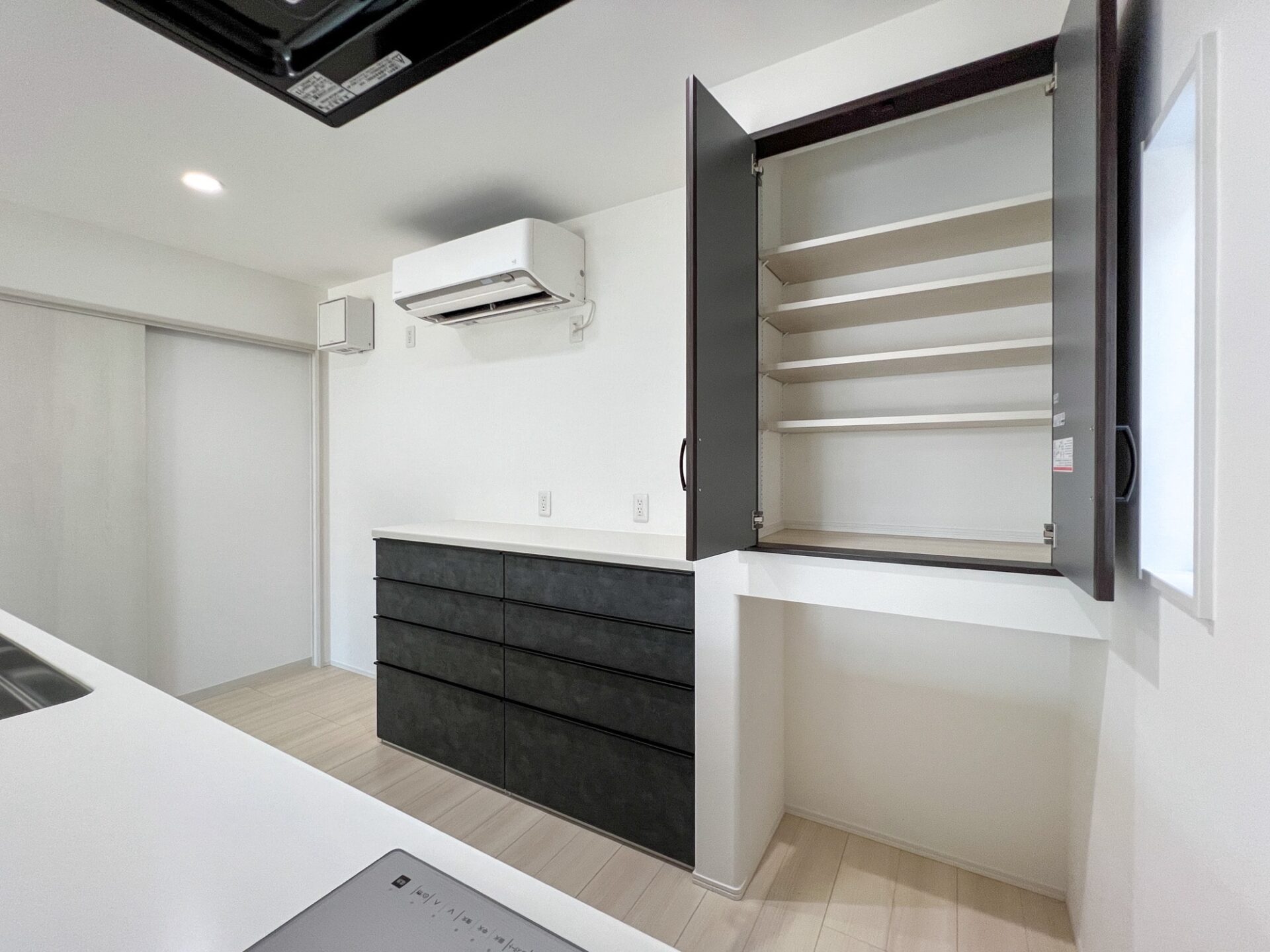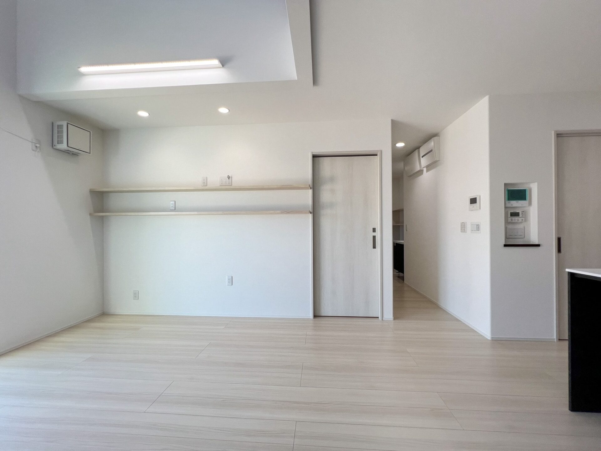 リビングには写真や趣味の小物を飾るための棚も用意しました。