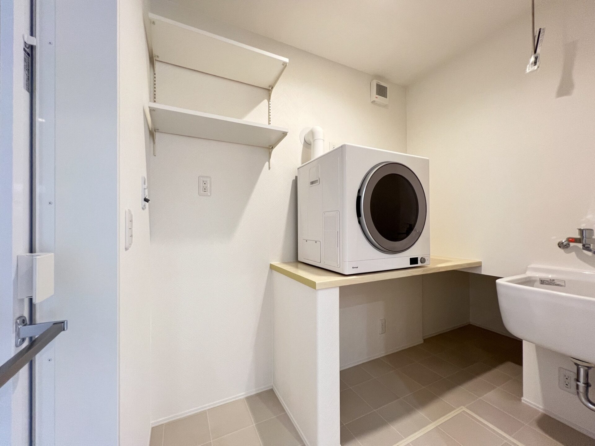 脱衣所と兼ねているので、洗濯がここだけで完結。
