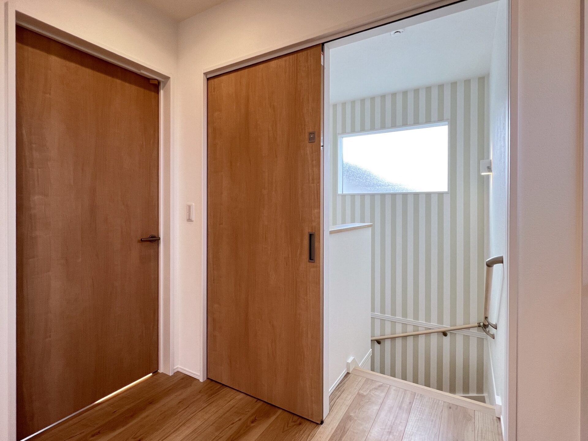 階段部分にもチャイルドロック付きの片引戸を使用し