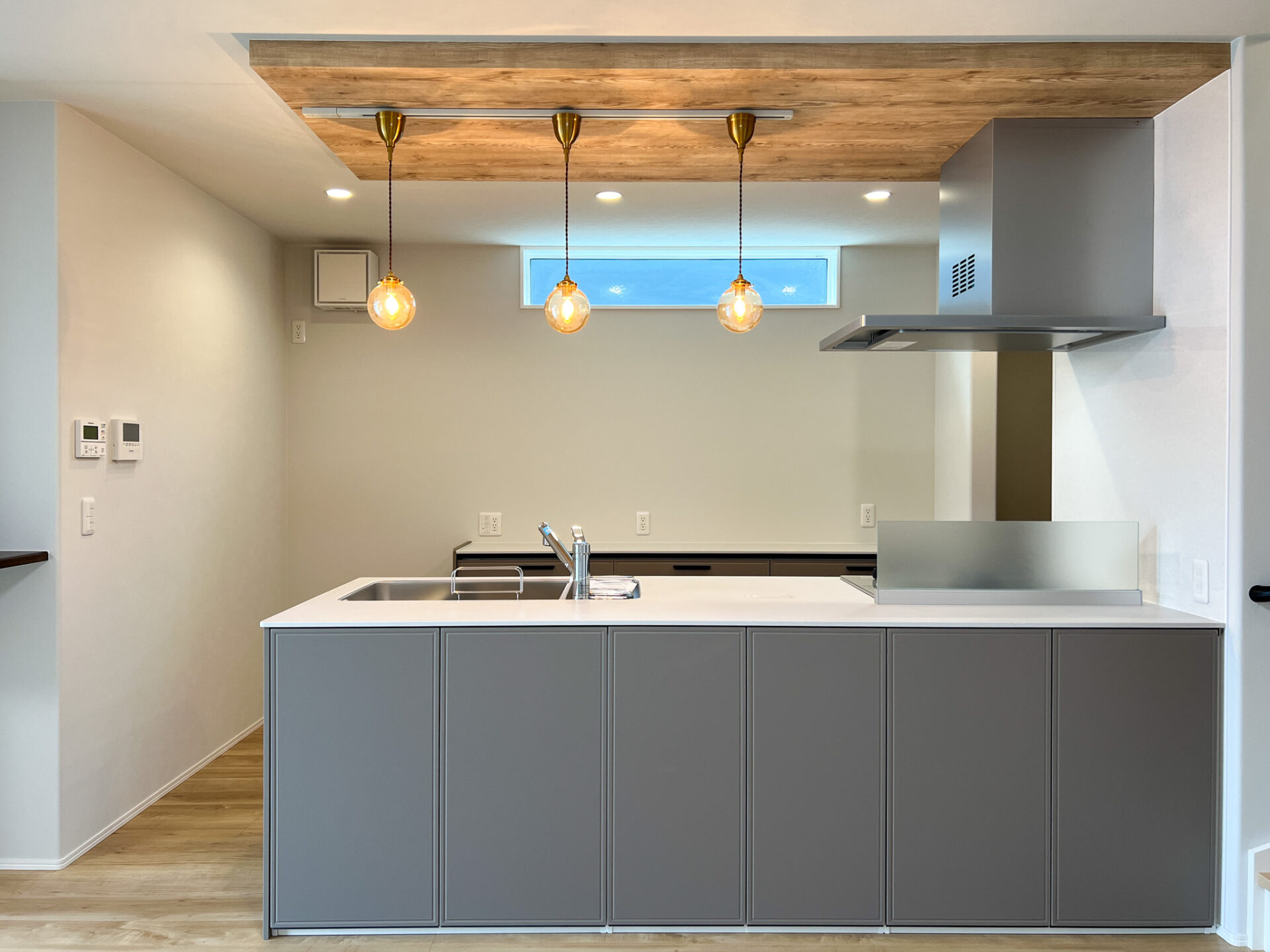 ペンダントライトがアクセントになり、空間にメリハリを与え、印象的な雰囲気に。