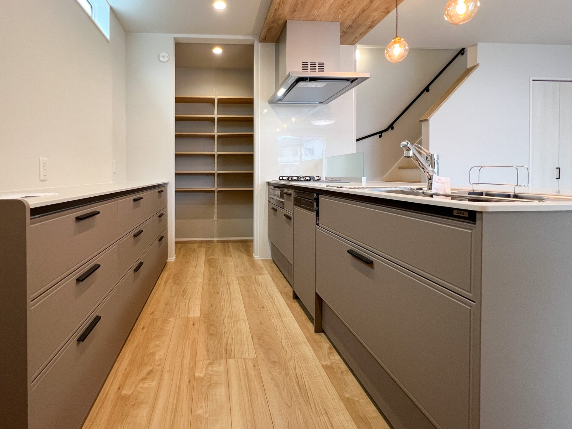 キッチン奥のパントリーは見た目よりもずっと大容量!