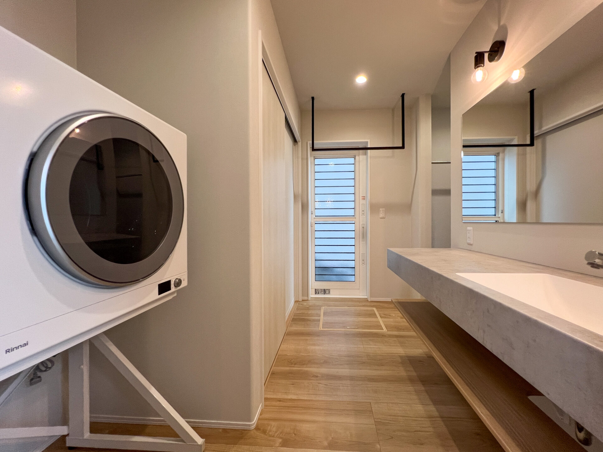 ユーティリティスペースにガス衣類乾燥機の「乾太くん」を導入したことで、家事効率が大幅にアップしました。