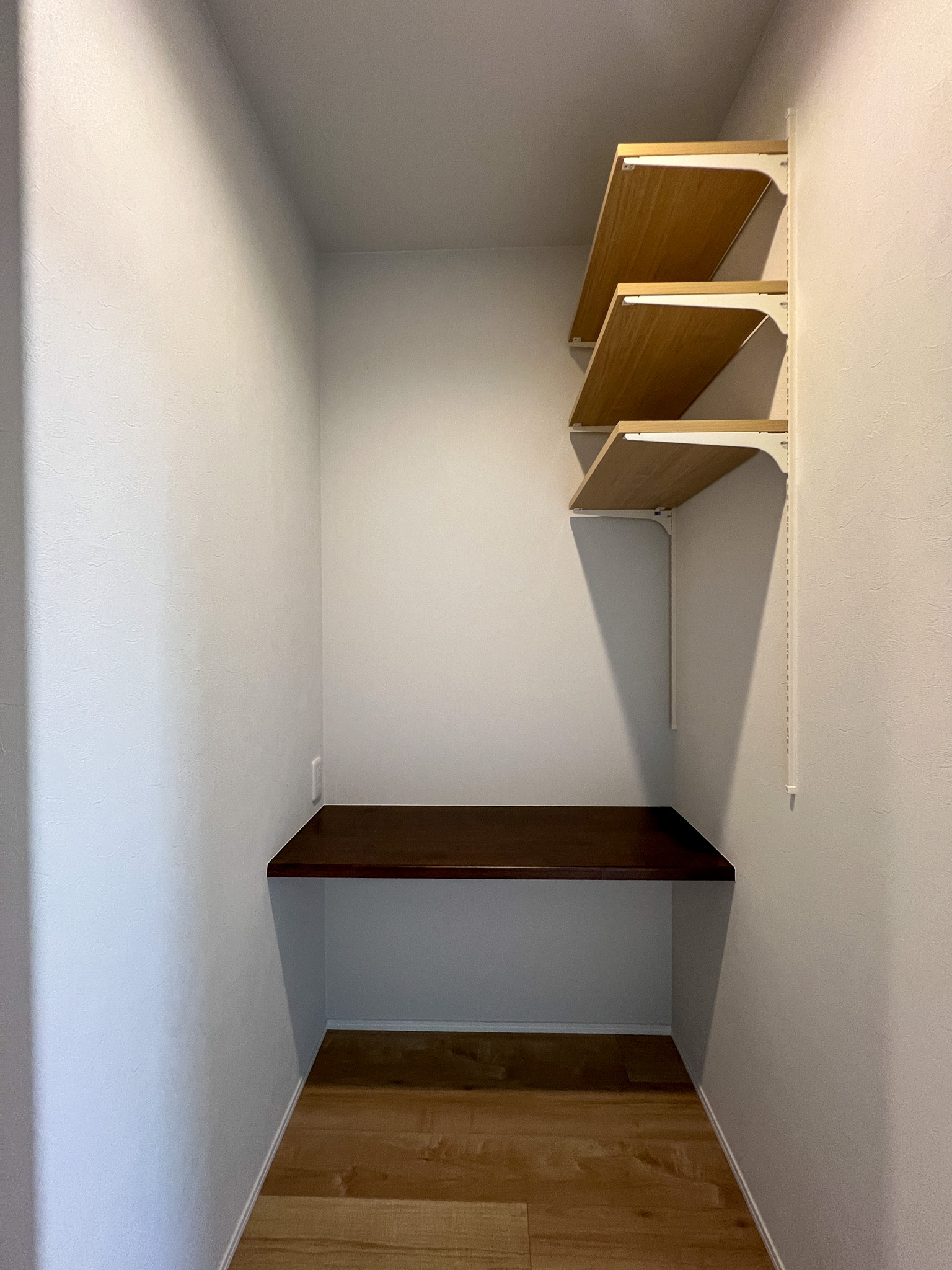 そして、共用できる設計にしたウォークインクローゼットには、テレワークスペースを用意しました。