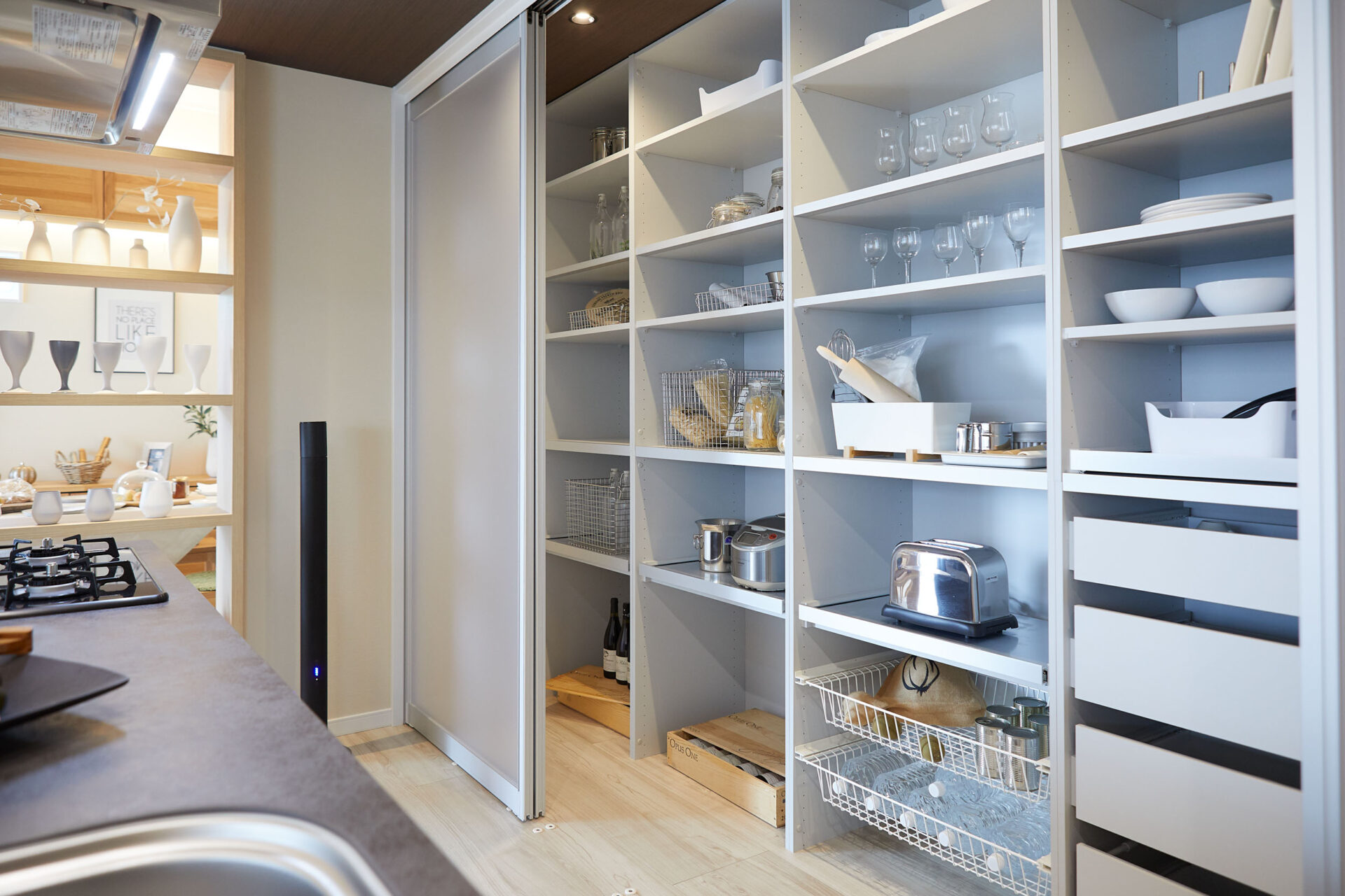 ・調理器具や食器、食品などはキッチンの背面側にまとめて収納する