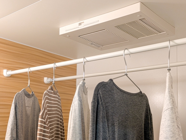 屋内干しの課題は「換気」と「湿気」。24時間換気システムや換気扇、サーキュレーターなどで、効率よく換気をし、空気の流れをつくることが大切です。さらに、除湿機や浴室乾燥機を活用すれば、雨の日や夜間でも効率的に乾かせます。