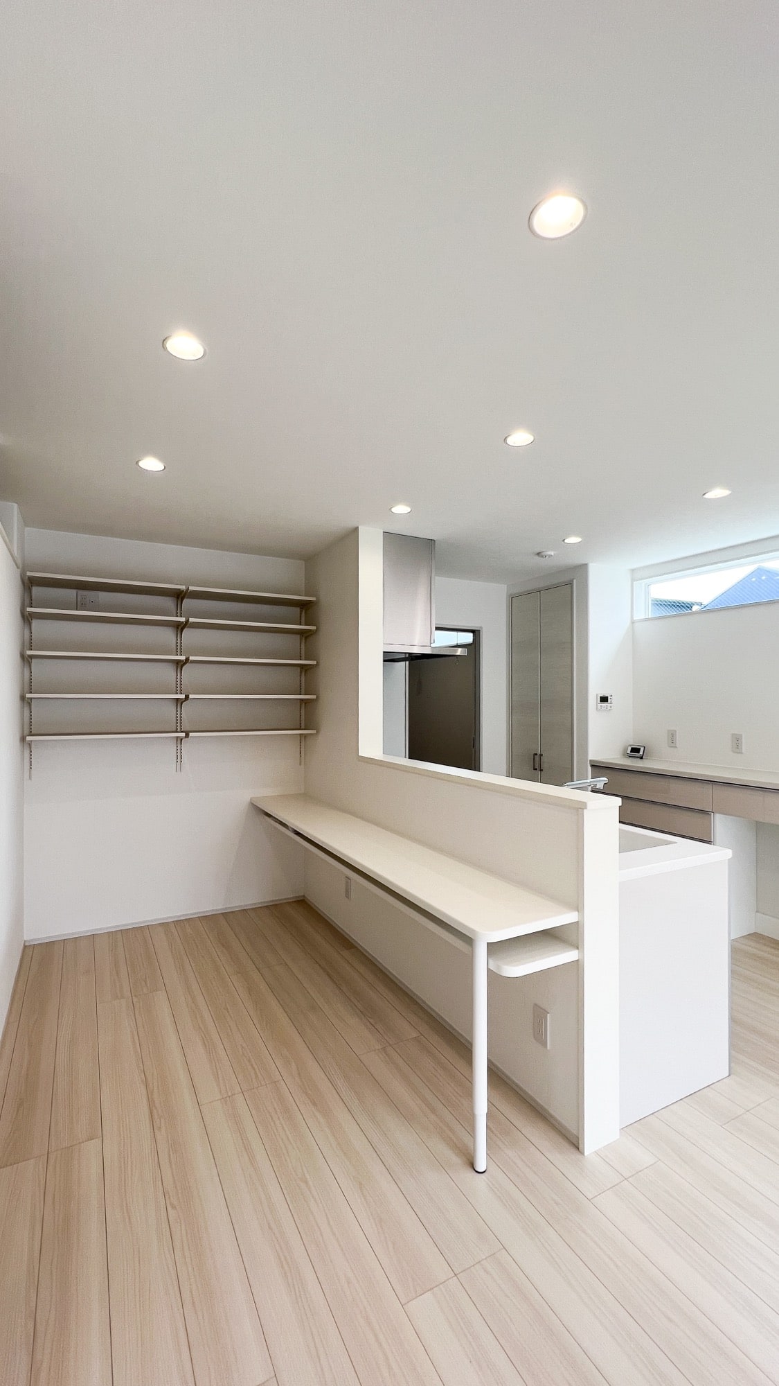 ダイニングの壁上部には可動棚を設置しました。