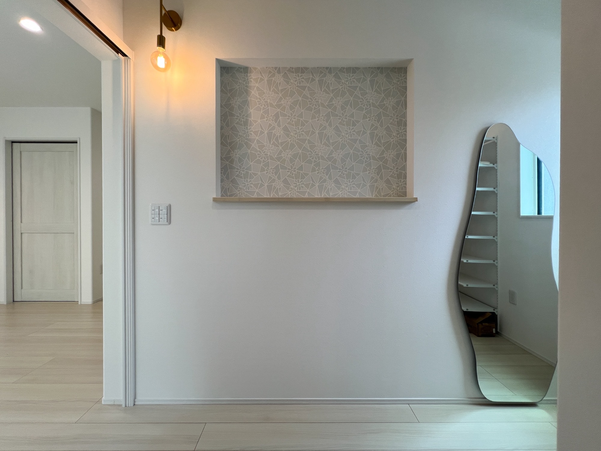 玄関では、靴はもちろんベビーカーやアウトドア用品まで収まるシューズクロークが人気で、さらに飾り棚を兼ねたニッチやカウンターなどを造作で計画することで、「ただ通るだけの場所」から「帰宅してホッとできる、おもてなしの空間」へと変わります。