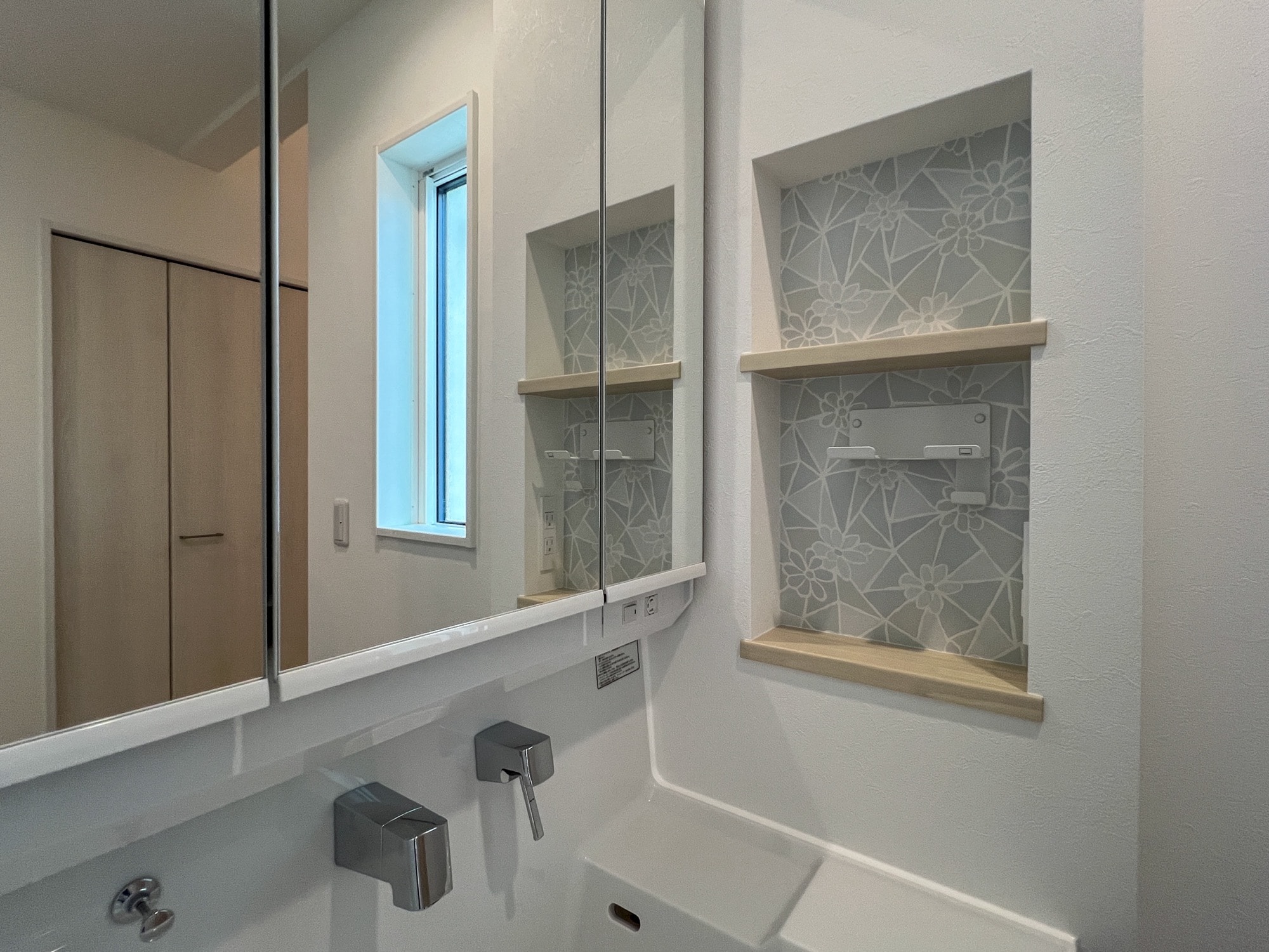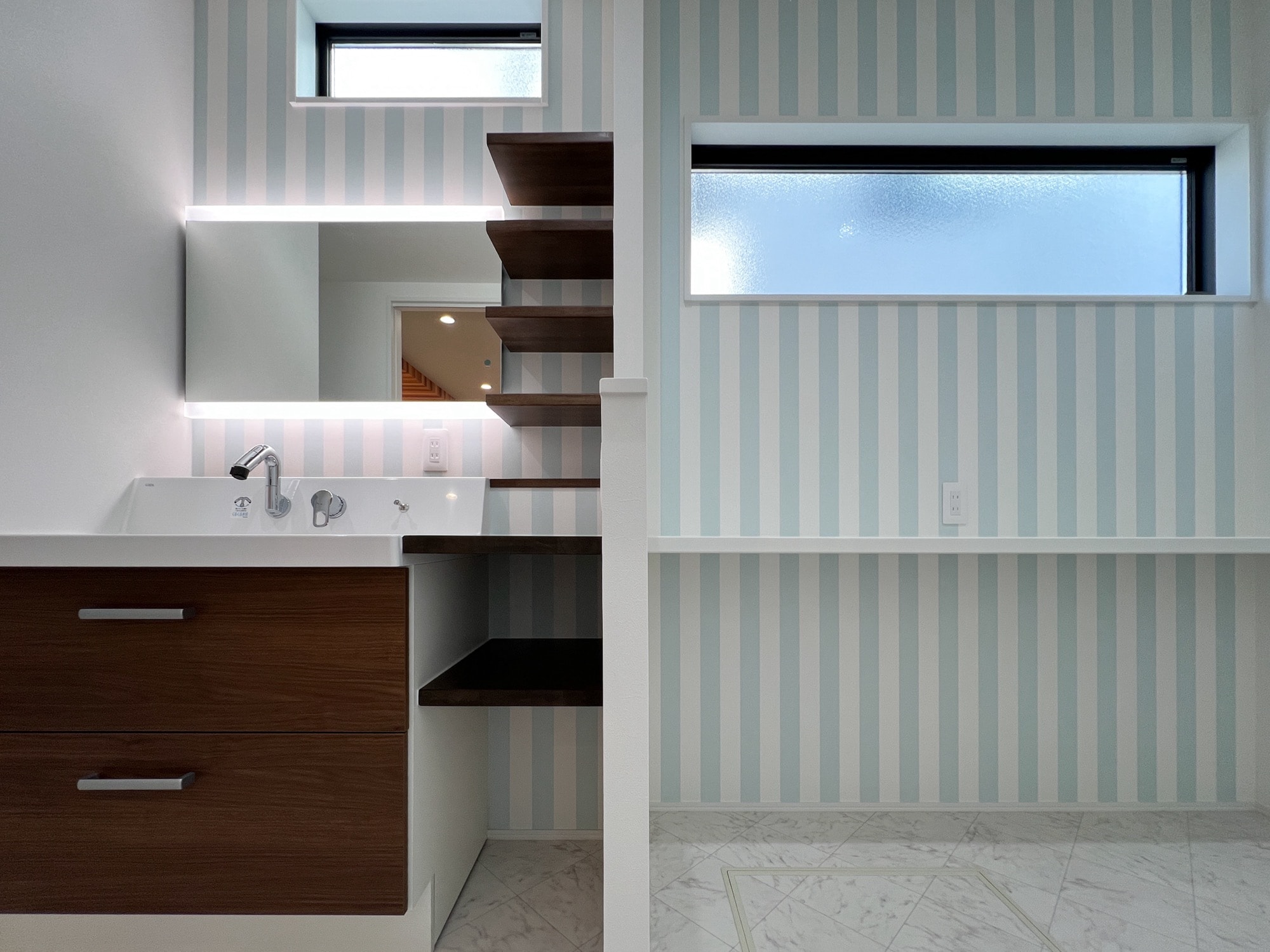 玄関と洗面まわりも、造作家具が活躍しやすい場所です。