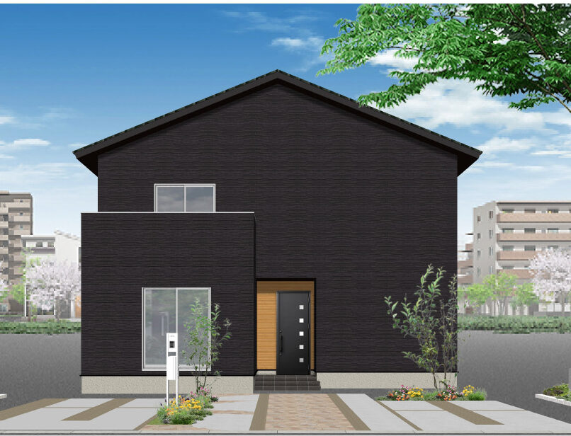 ブラックの外観がスタイリッシュな2階建てのお家です。