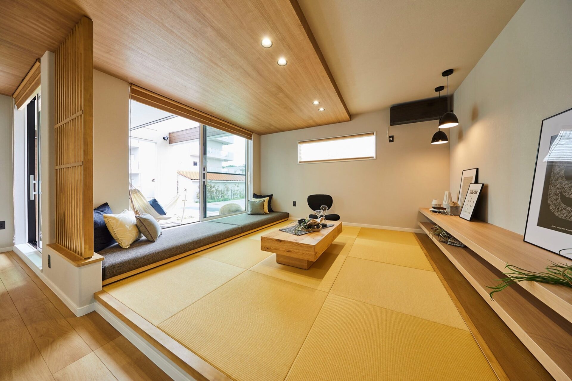 リビング横に小上がりの畳スペースを設けるなど、アクセントを兼ねた