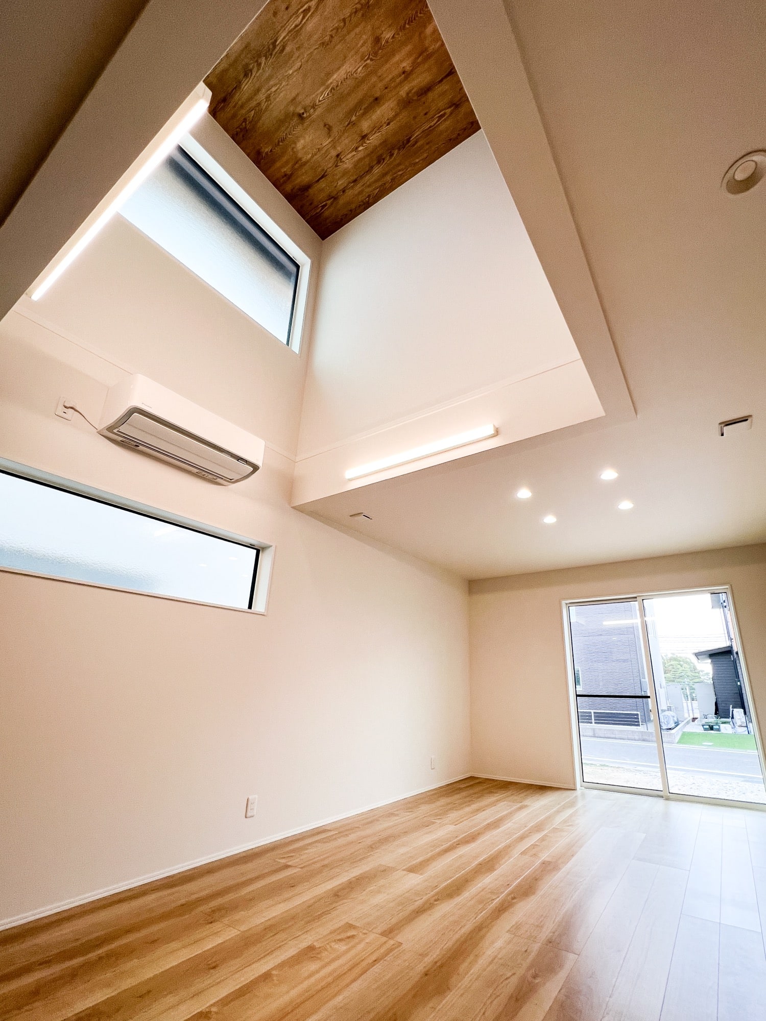 木目天井が白壁のアクセントになったおしゃれな空間です。