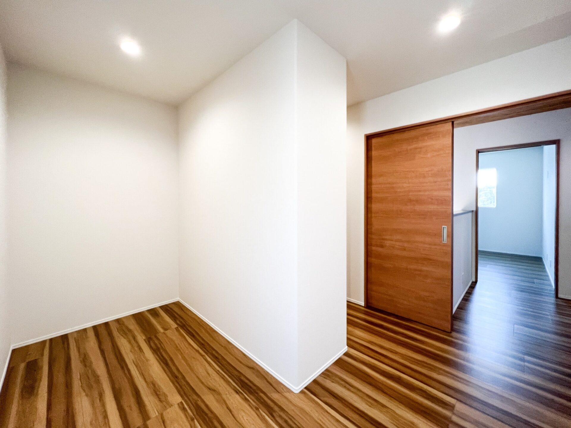 広い納戸にはあえて棚などを付けず、書斎などへの応用が可能になりました。