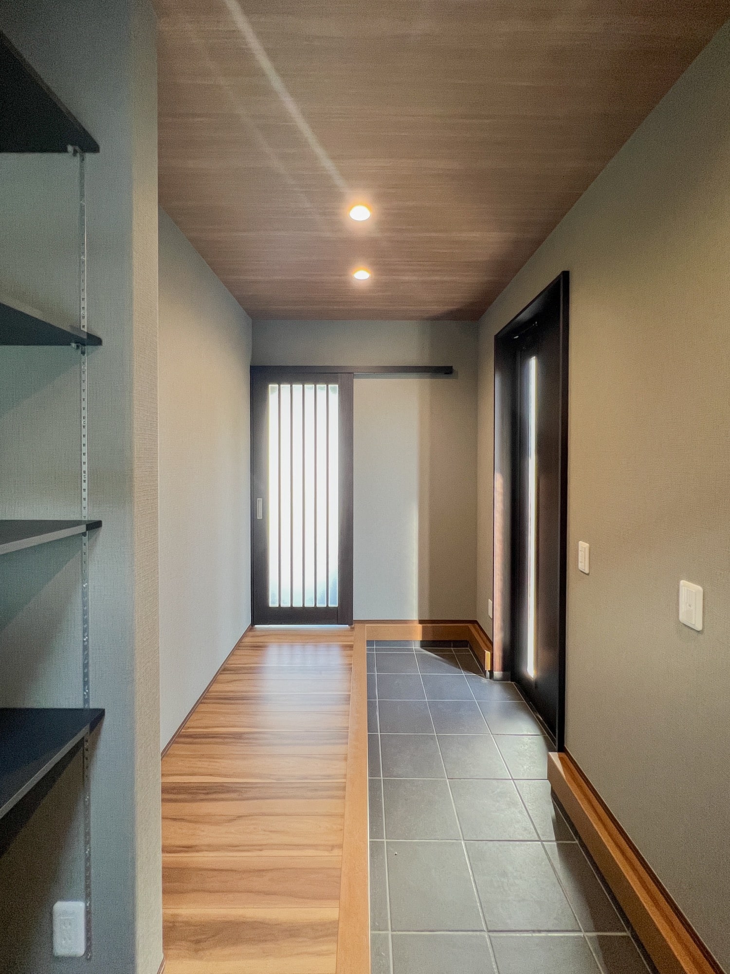 ・玄関の天井が木目で、お家に入ってすぐに落ち着いた和の空間に癒された