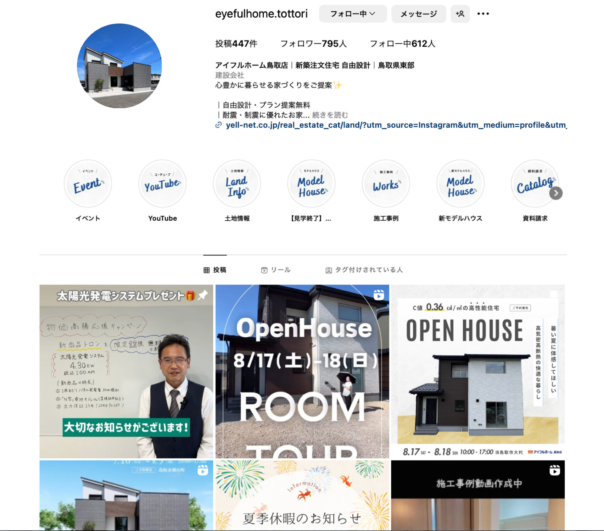 アイフルホーム鳥取店のInstagramでは、イベント情報を中心に、家づくりに役立つ情報もいろいろ発信していますので、ぜひ一度ご覧ください!