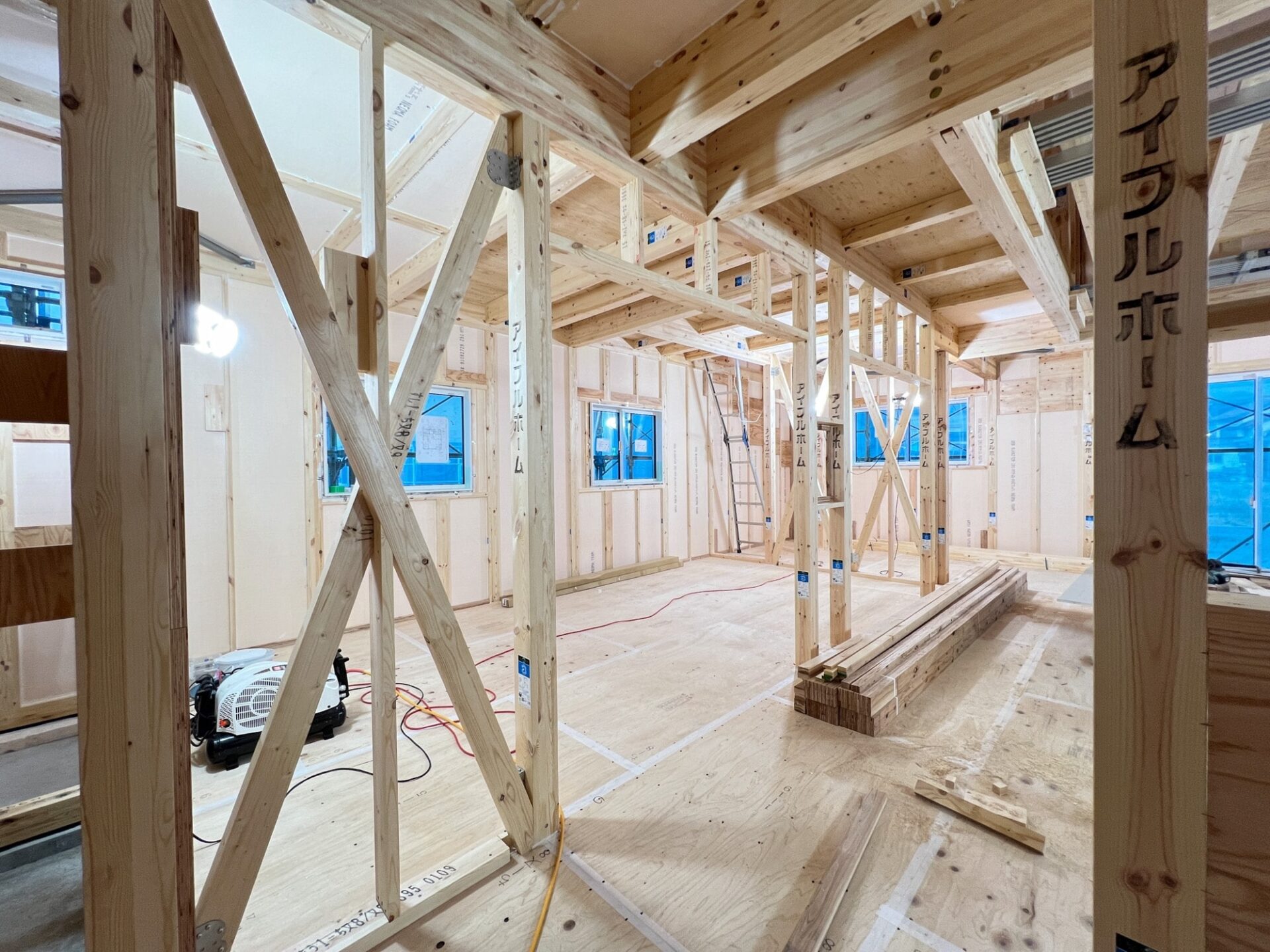 上棟後に行われる検査で、建物本体の構造部分(柱・梁・筋交いなど)に