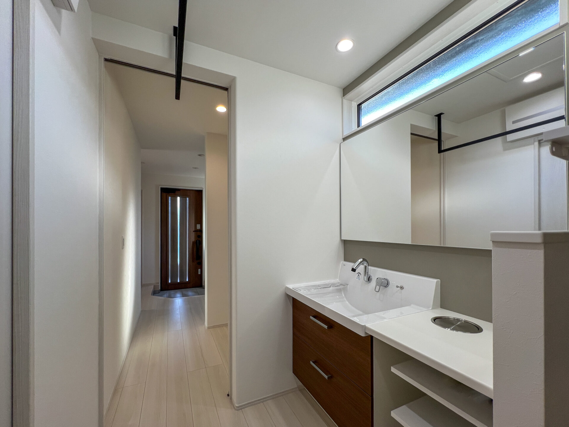 そのまま、洗面化粧台+ランドリールームや浴室にも向かえます。