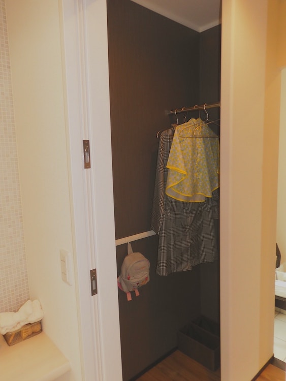 帰宅後はファミリークローゼットへ直行してコートやスーツを脱ぎ、