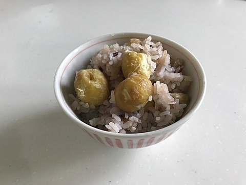 余韻に浸りながら家に入ると、食卓には茹で栗と栗ご飯が