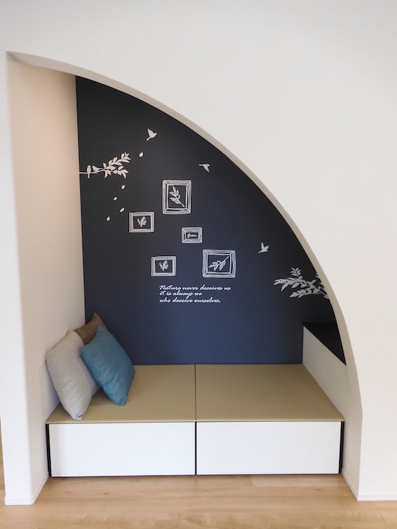 階段下に生まれがちなデッドスペースを「ヌック」として有効活用。