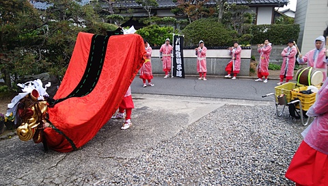 氏子の家を訪問し獅子舞による「門付け(かどつけ)」