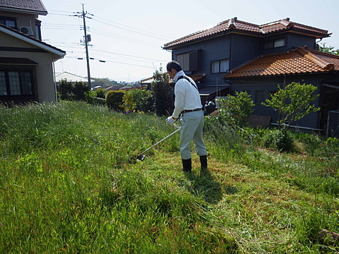 GW中の先日、これから地鎮祭を行われるお施主様の敷地の草刈りを、社長の国岡と二人でやってきました。