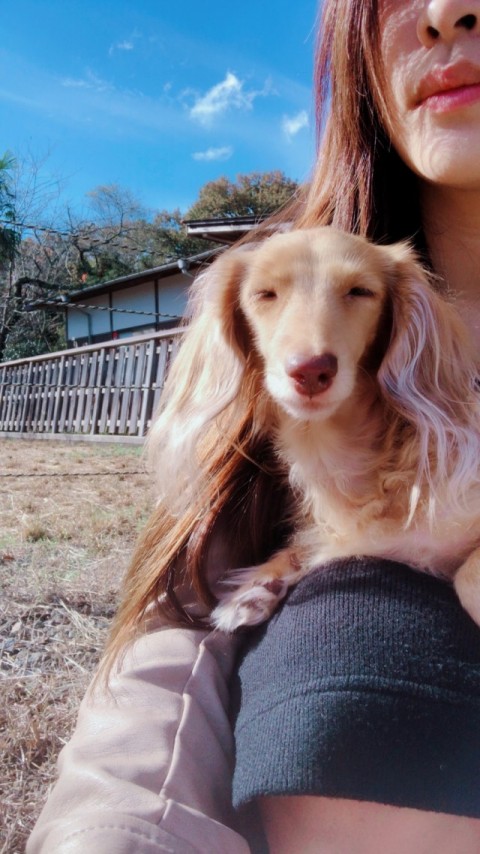 愛犬とお外でひなたぼっこを