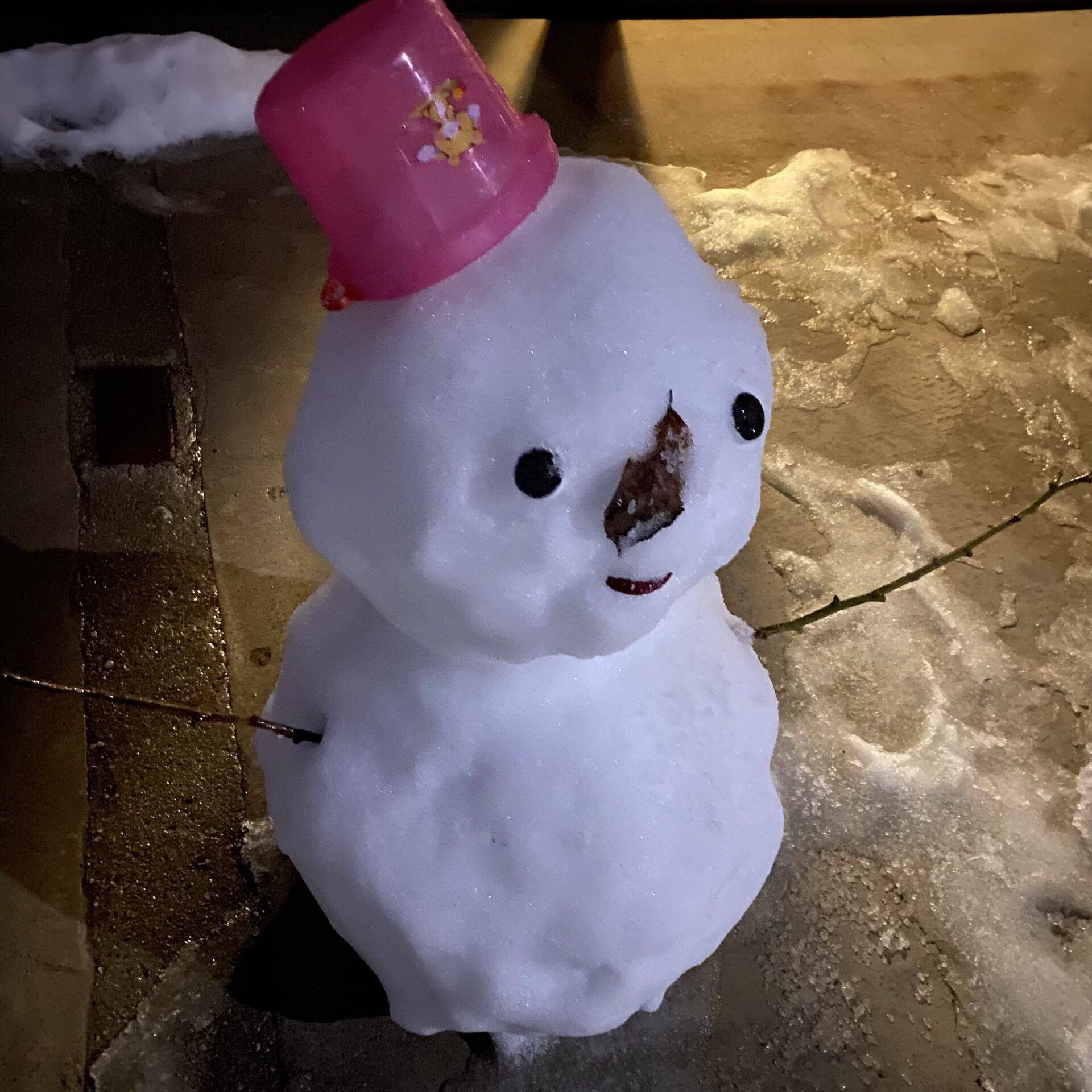 写真は、頼まれて作った雪だるまです。