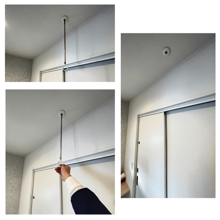 天井に取り外し可能なポールを取り付けて、竿を通すだけ。