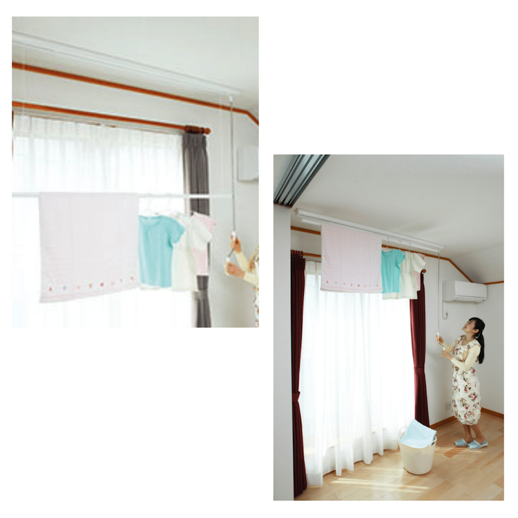 専用の操作棒を使って、物干しの高さを上下させるもの。