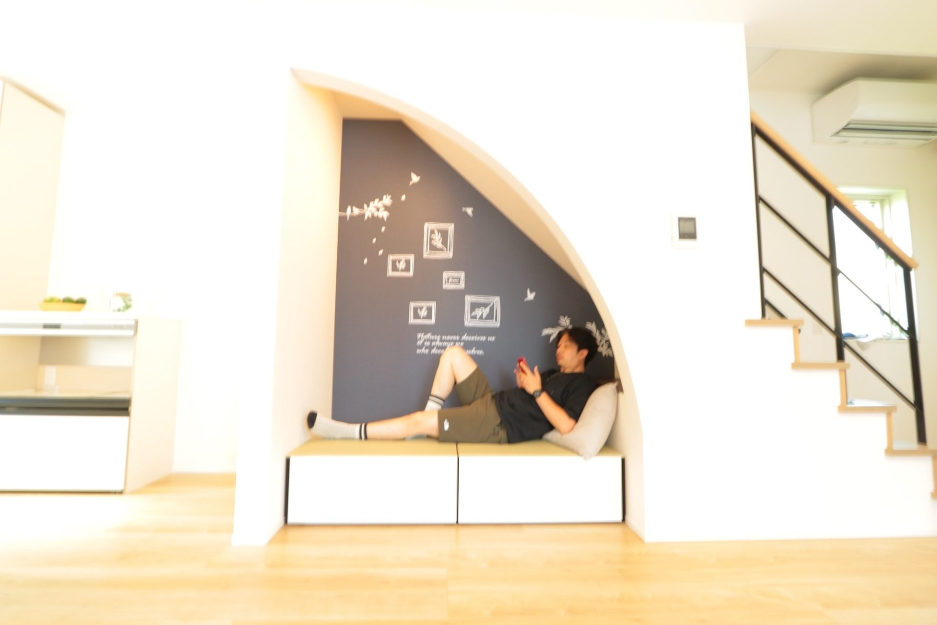 もう一つ注目していただきたいのは、階段下のデッドスペースを活用したヌックスペース! お子様はもちろん、大人の遊び心もくすぐるアイデア。読書やゲーム、考え事など、一人の世界に没頭したいときにぴったり。お昼寝にも重宝するかもしれません。