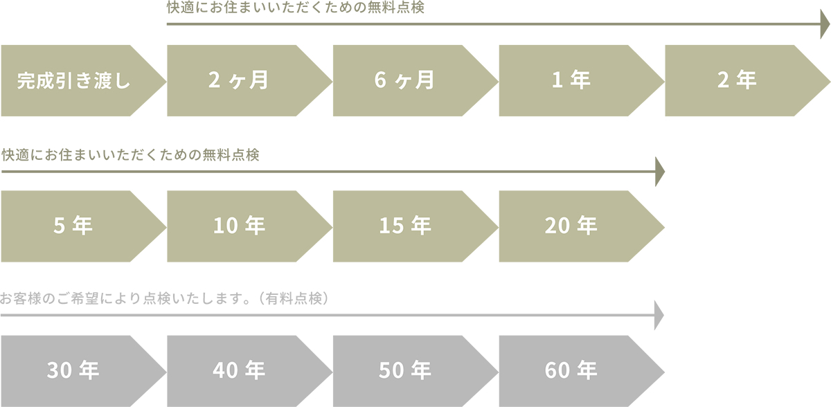 建てられた直後から、1・2・5・10・15・20年と、継続して無料点検を実施します。