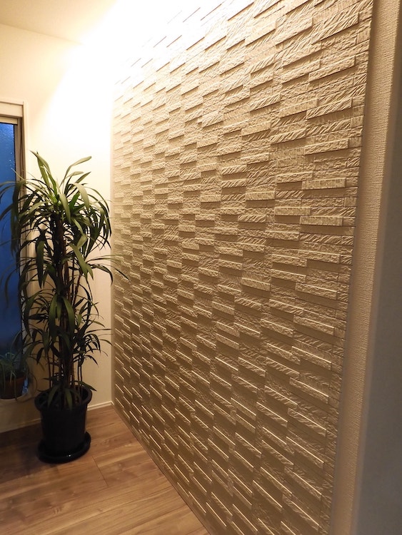 H様:玄関に設置したエコカラットです。追加でリビングにも貼りたいなと思うほど。