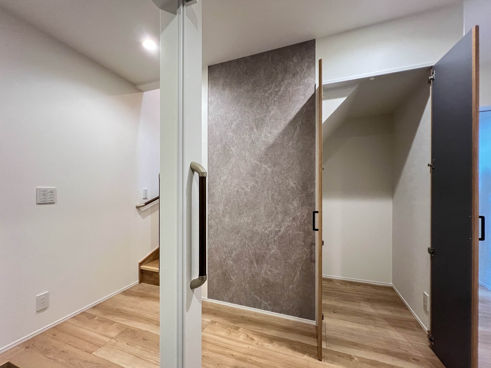玄関ホールに面した廊下にも、階段下を活用した