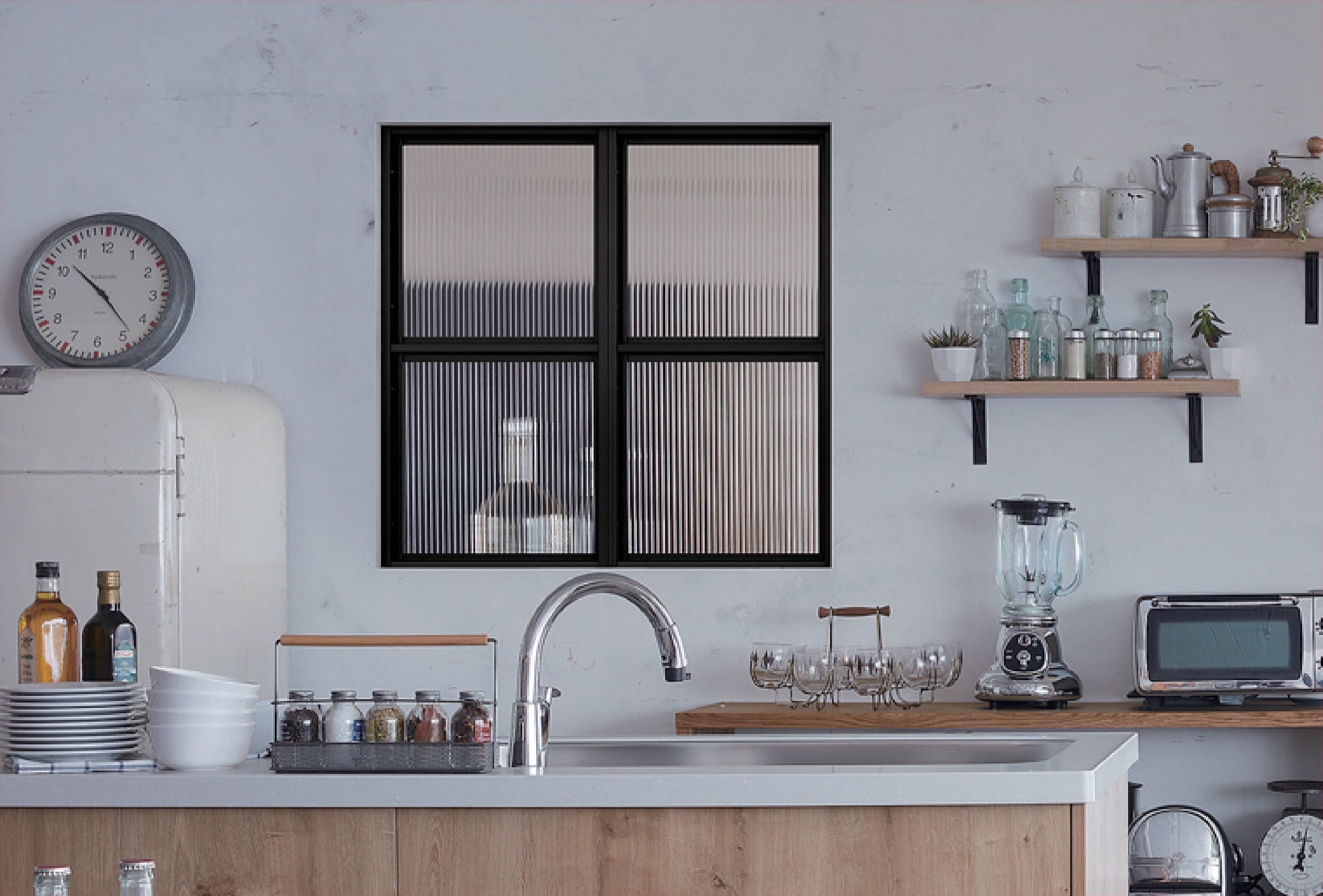 縦にスライドさせるタイプ。省スペースで通風も良好です。高層階やキッチン窓などに適しています。
