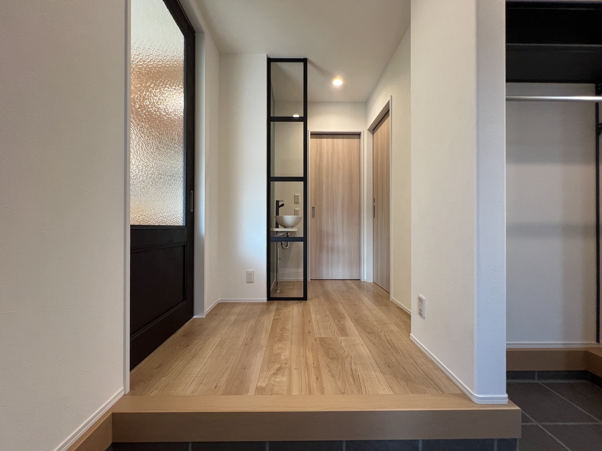 家全体の色柄を統一してモダンに仕上げるのもおすすめです。開閉方向は間取りに合わせ、子供がぶつからないよう配置を。スマートな動線設計と合わせれば家事効率アップ!
