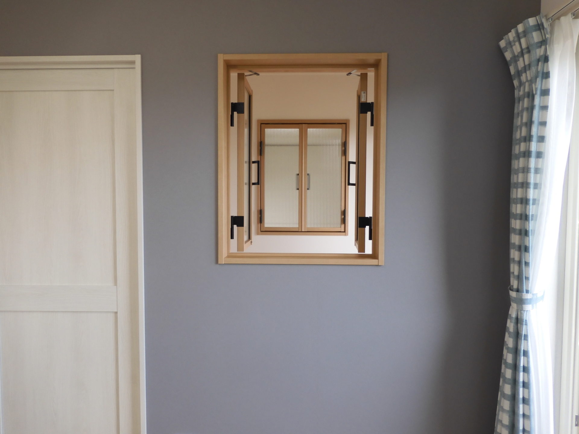 内窓といっても、窓ガラスの内側にもう1つつけるタイプのものではなく、室内の壁に取り付けた窓です。ご来場いただいたお客様からも好評のため、今回はその「内窓」をご紹介したいと思います。