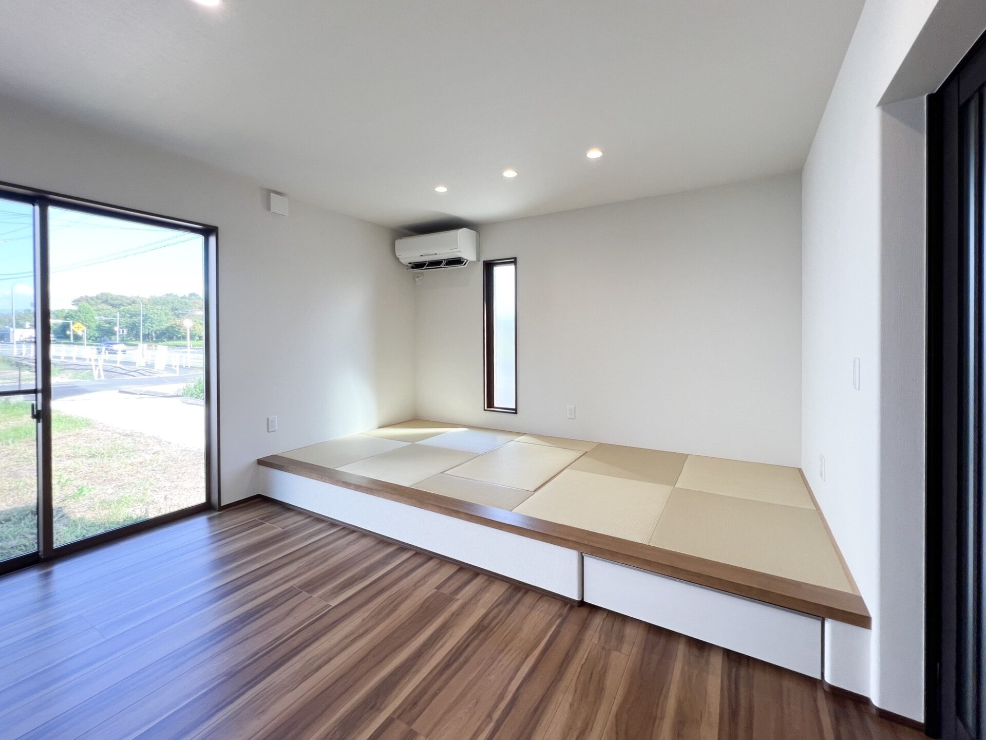 昨今は、リビングの一角にリビングの床とフラットな「畳コーナー」を設けたり、あえて小上がり風・掘りごたつ風にして、段差部分を大容量収納として使うなど、ライフスタイルや好みのデザインに合わせたプランも人気です。