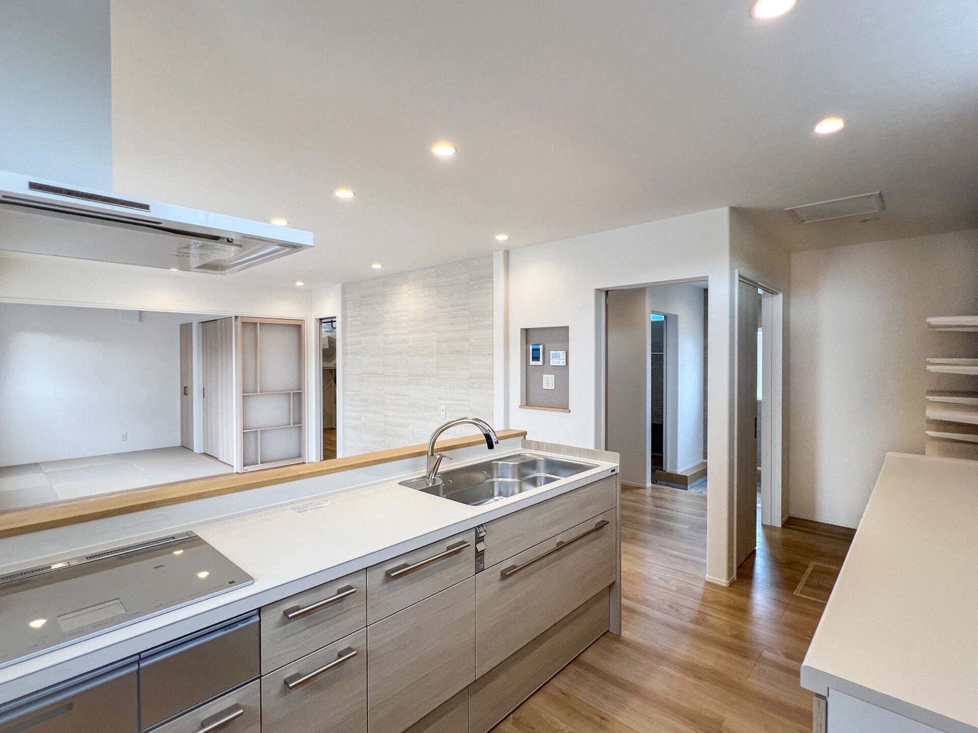 キッチンからは和室が見通せるので、料理をしながらでも