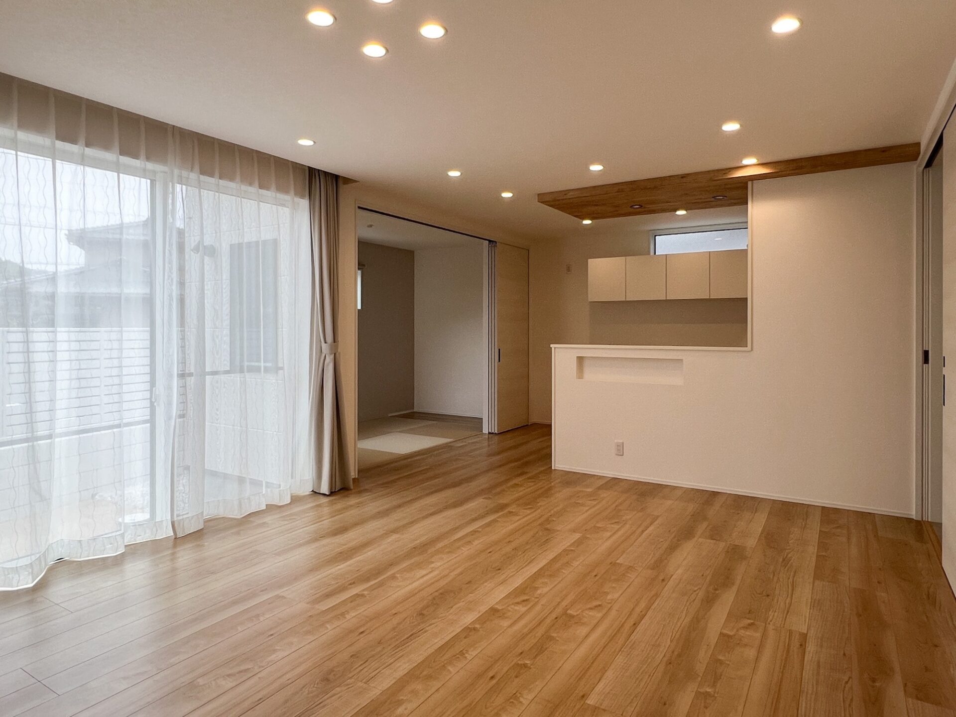 リビングにつながる和室は、扉を開放することで奥行きを感じさせます。