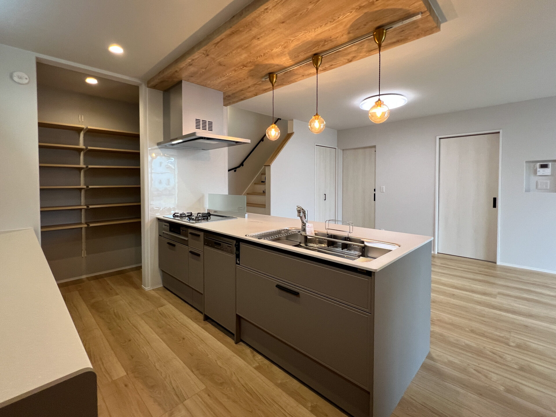 対面キッチンだと、ダイニング側はペニンシュラ型になっている場合と、アイランド型になっている場合があります。