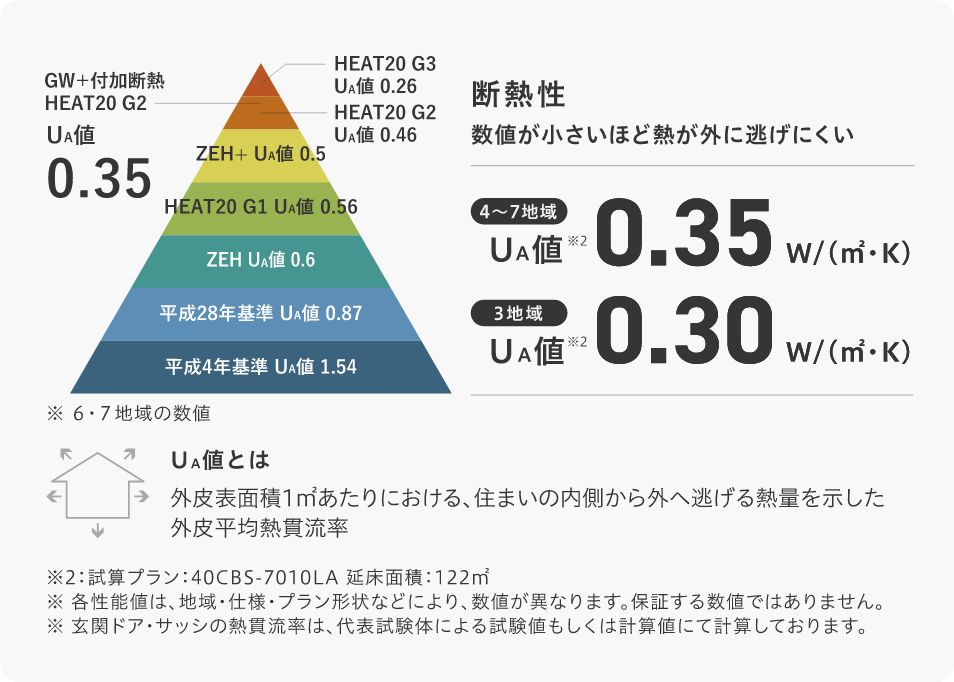 熱伝導率はλ=0.020[W/(m・K)※3。数ある断熱材の中でも世界最高レベルの性能です。※3 熱伝導率:値が小さいほど熱が伝わりにくく、断熱性が高いことを表しています。