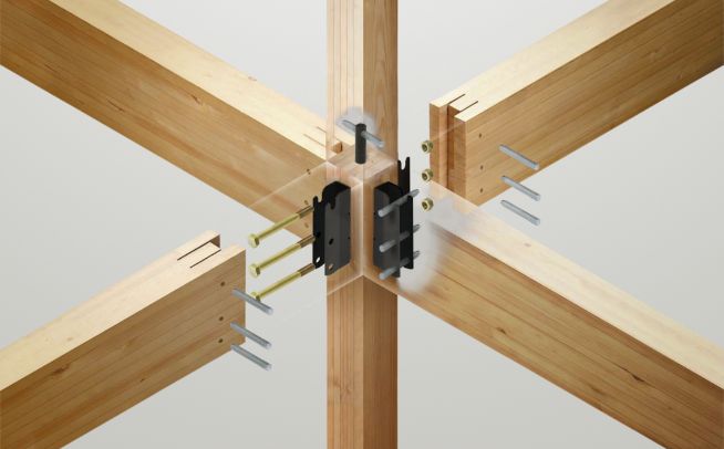 構造接合部には、意匠登録された「TS金物」を全棟で採用。高精度かつ強固な接合を実現する専用金物で、構造のブレや変形を抑え、地震に強い住まいづくりを支えます。設計通りの性能を確保するための、見えない部分のこだわりです。