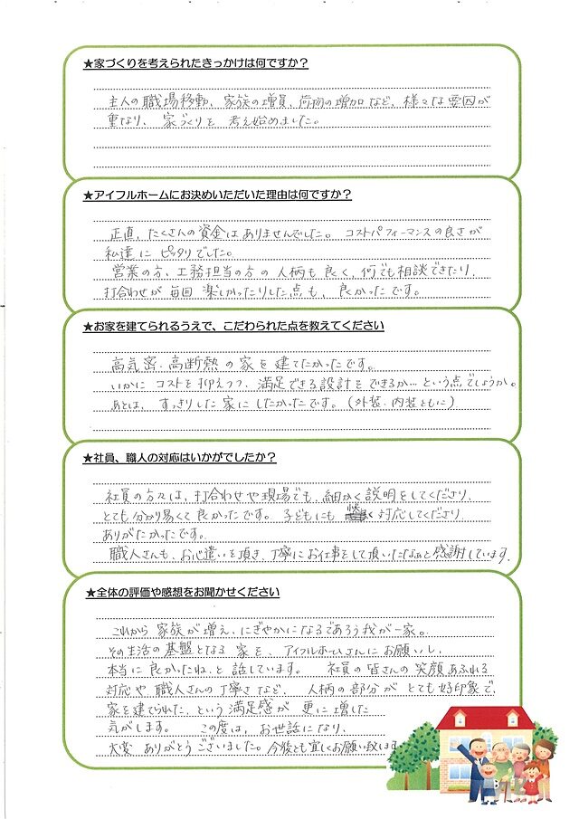 実際に住んでいる方のリアルな声を集めました。間取りの工夫や住み心地、お気に入りポイントなど、家づくりの参考にぜひご覧ください。