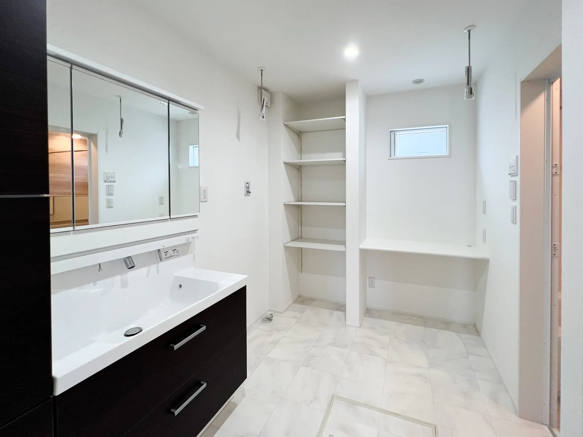 室内干しもできる洗面脱衣所