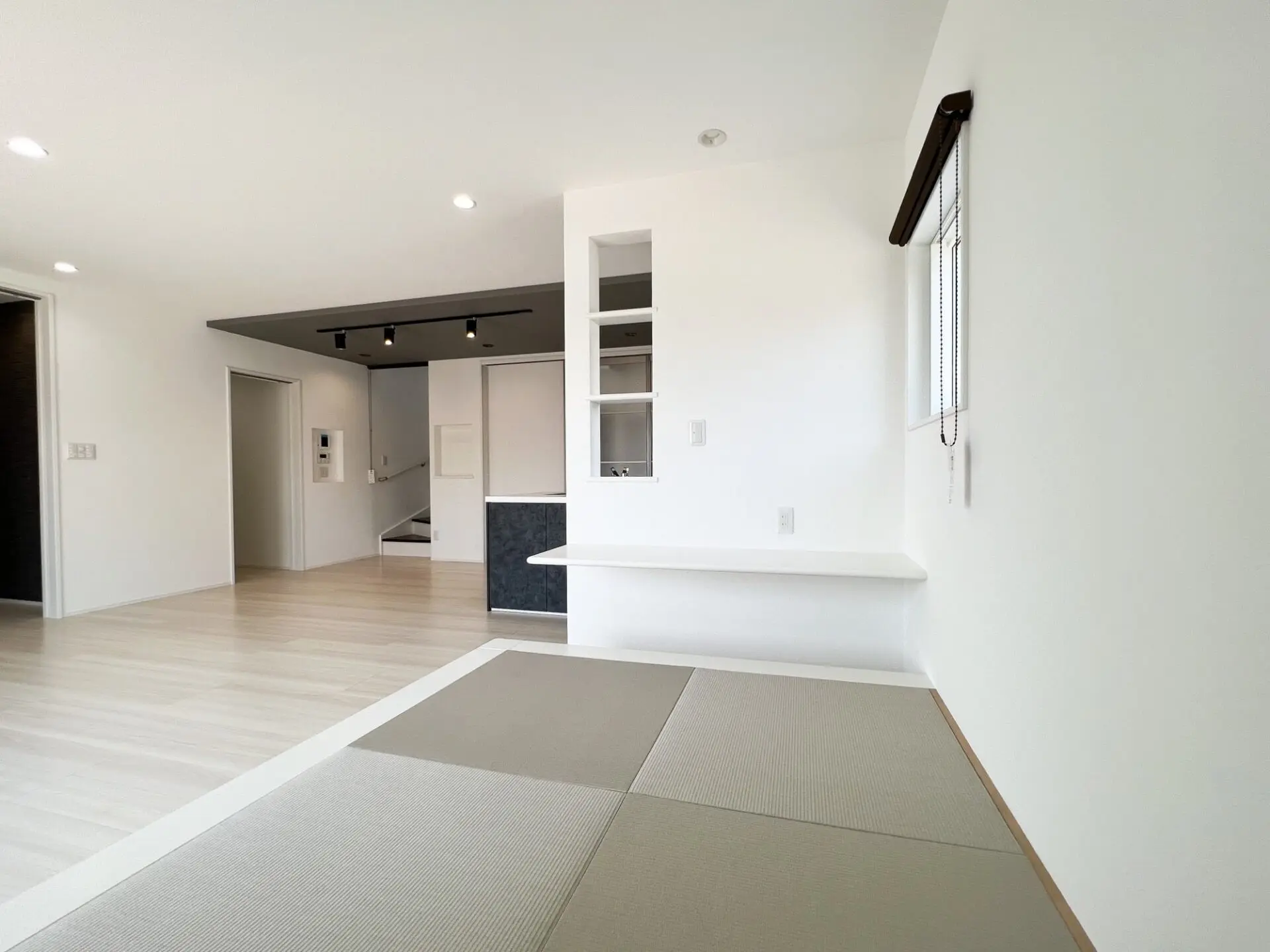 壁に飾り棚をしつらえた小上がり畳スペース