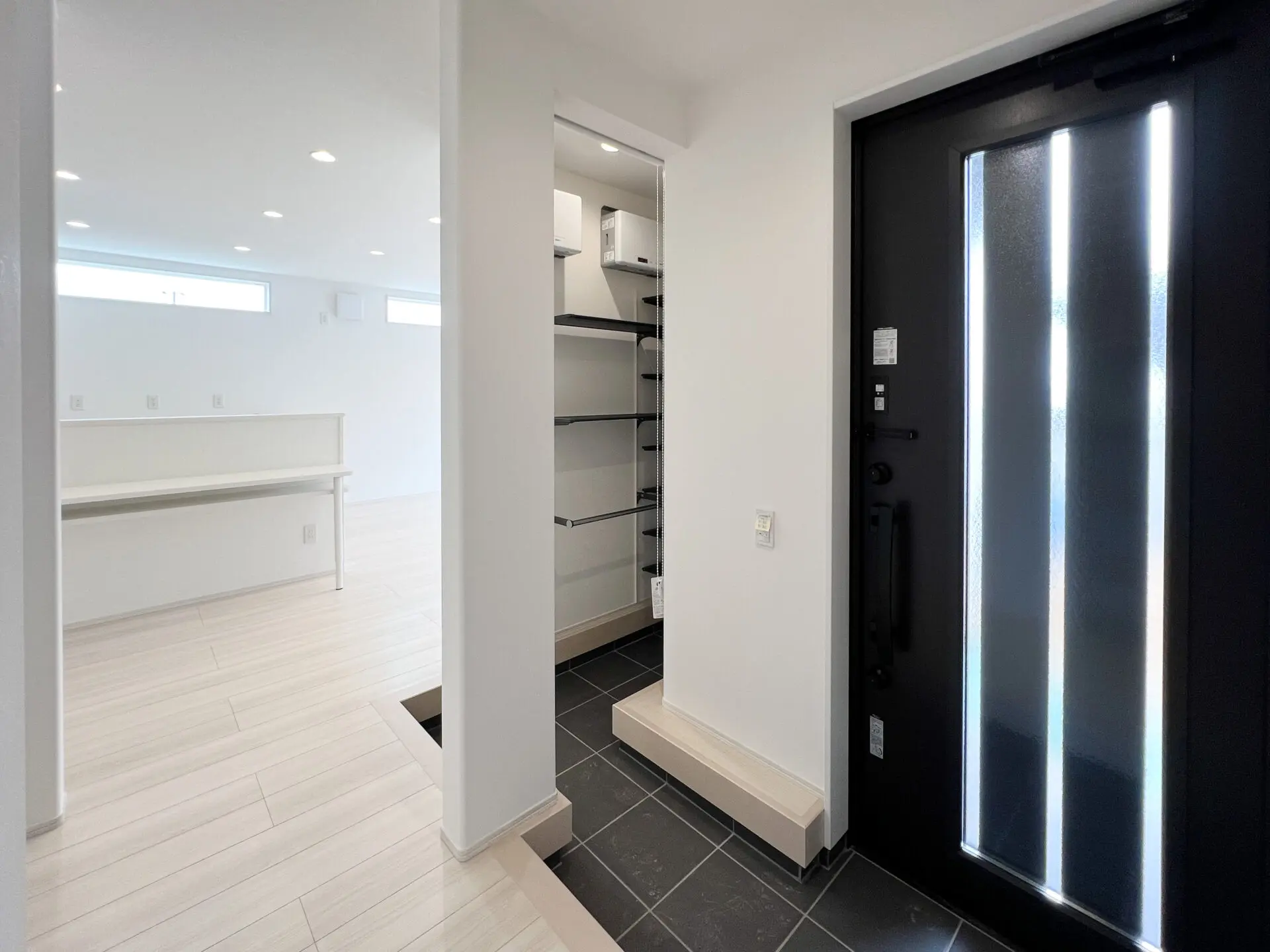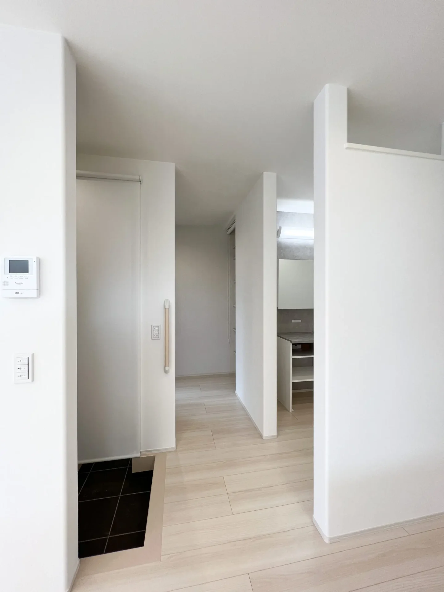 玄関ホールとリビングの間は建具が無く開放的なつくり