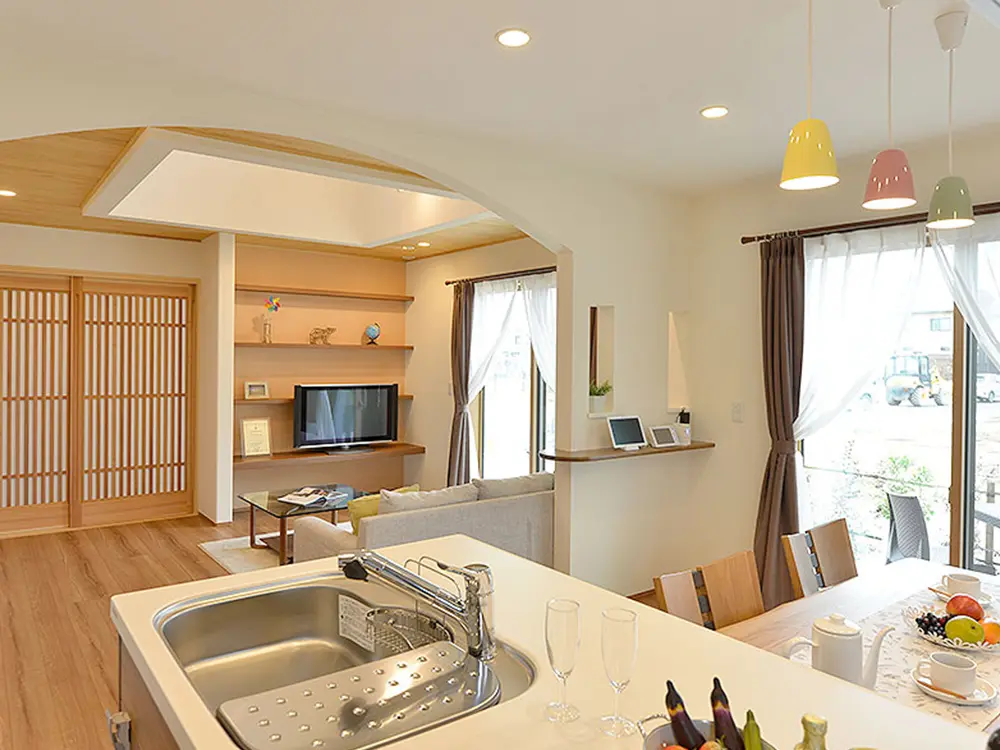 LDKは、和室・タイル張りのデッキとも繋がっています。