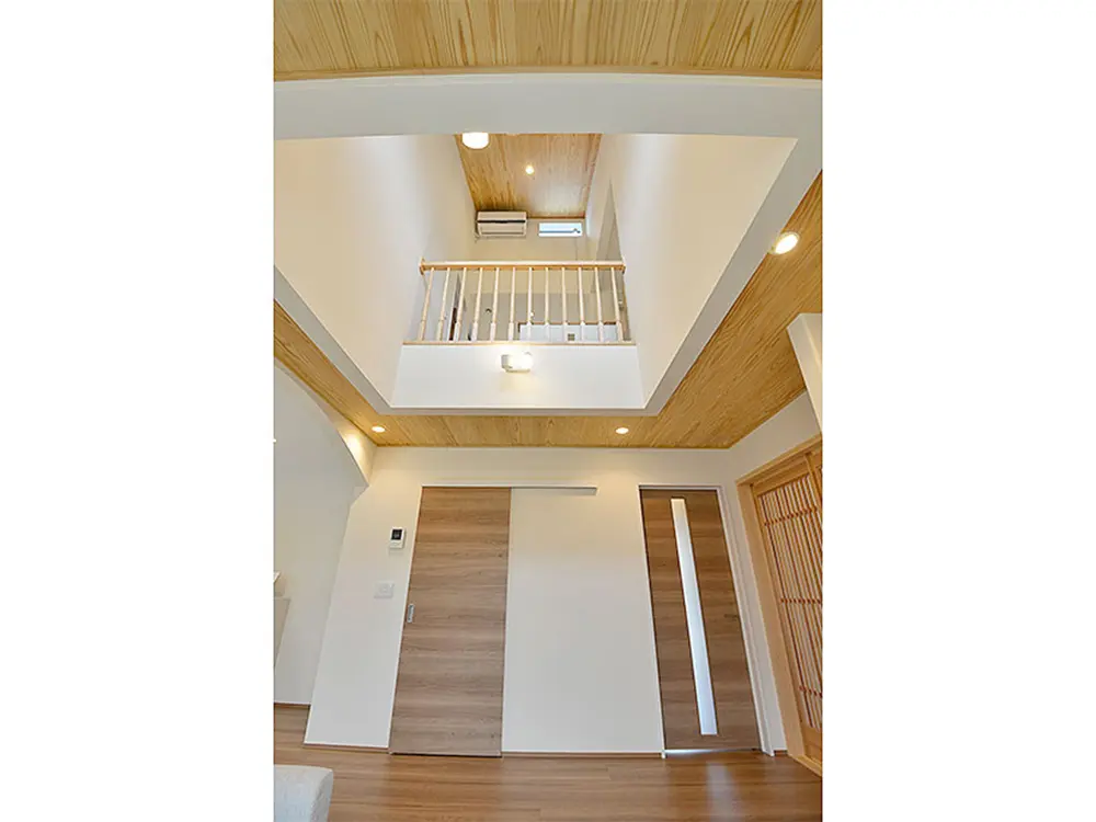 大きな吹き抜けは通風と冷暖房時の空気の流れを作ります。