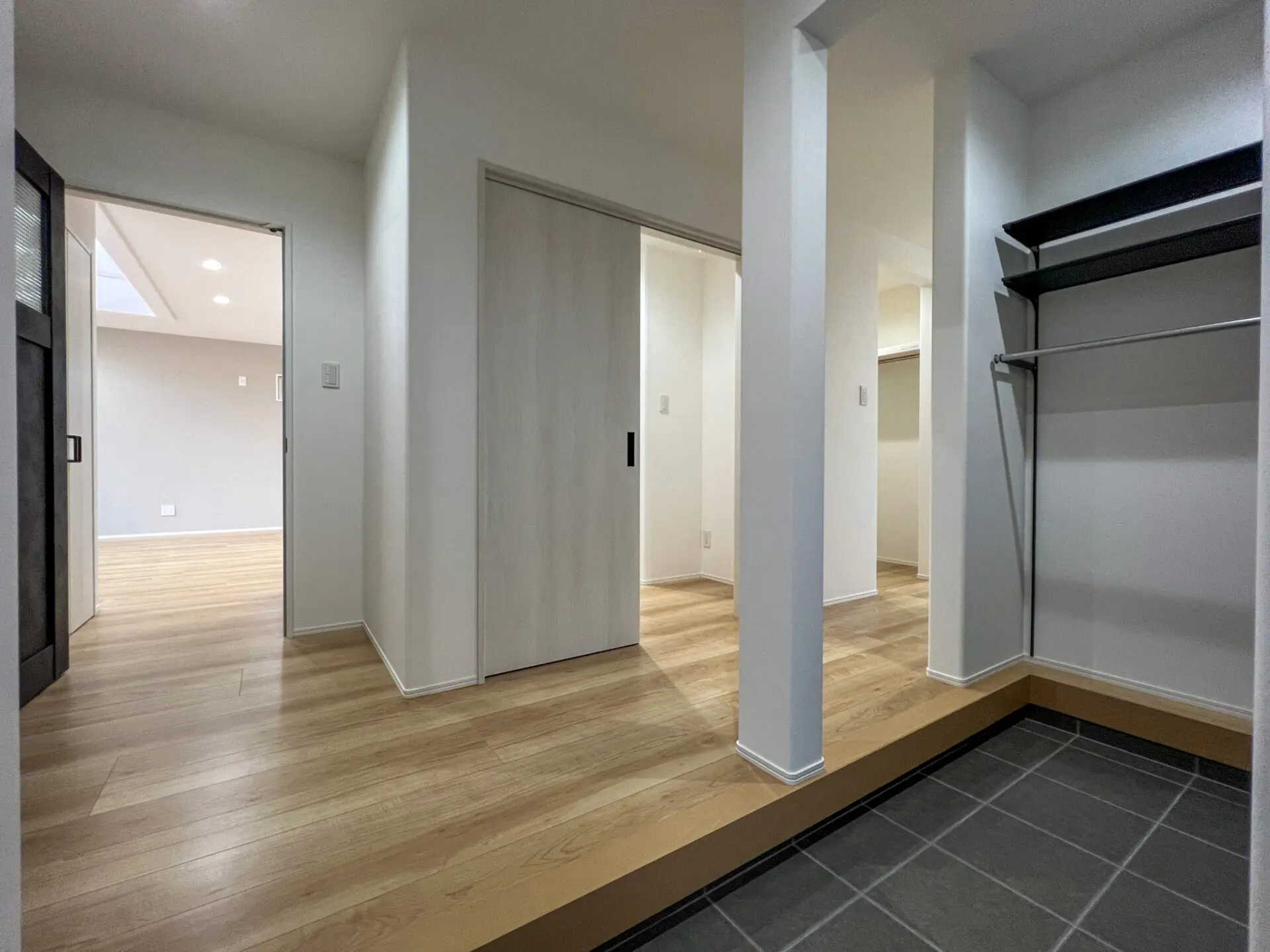 ランドリールーム→ウォークスルークローゼットの動線は洗濯から収納までの距離が短く家事効率アップ!